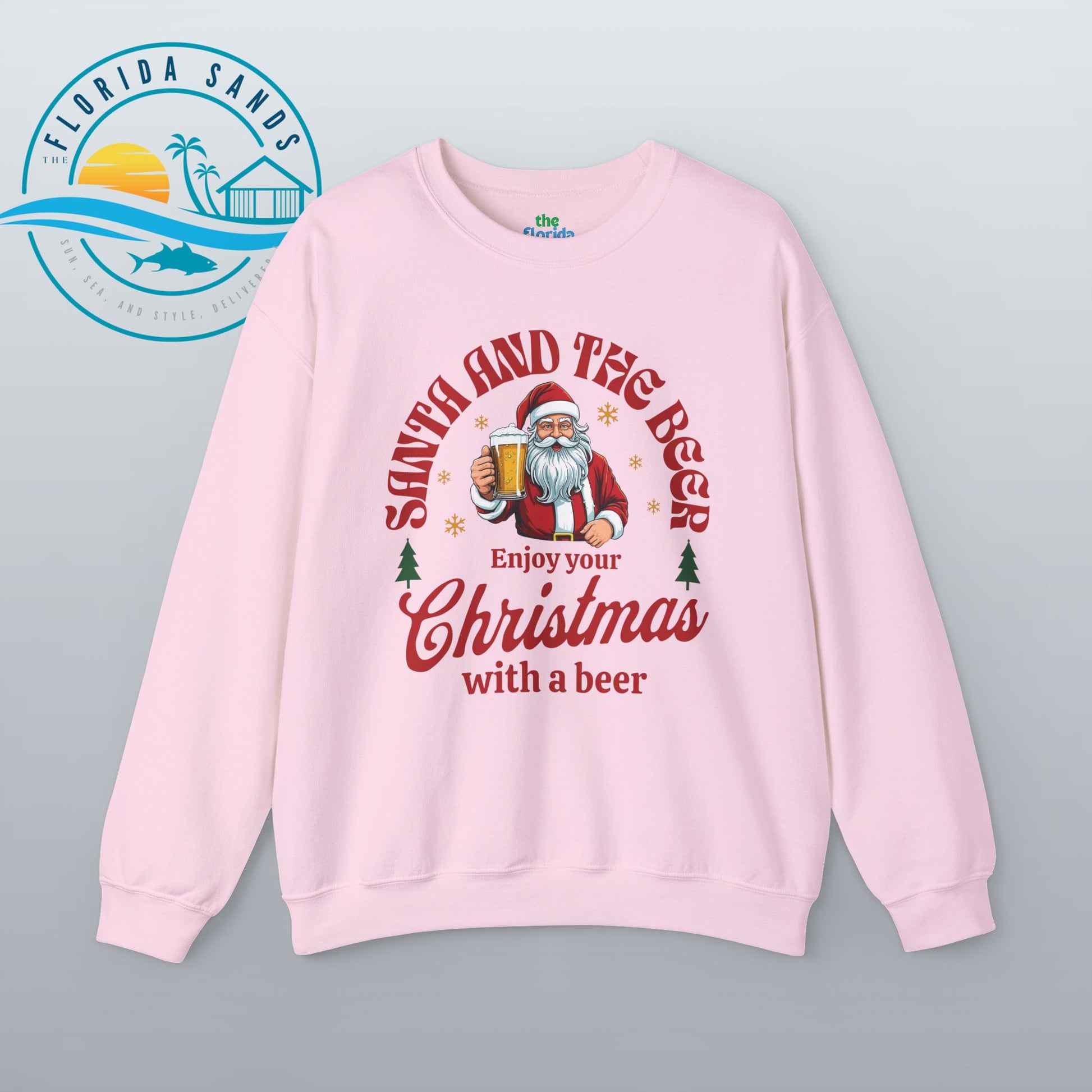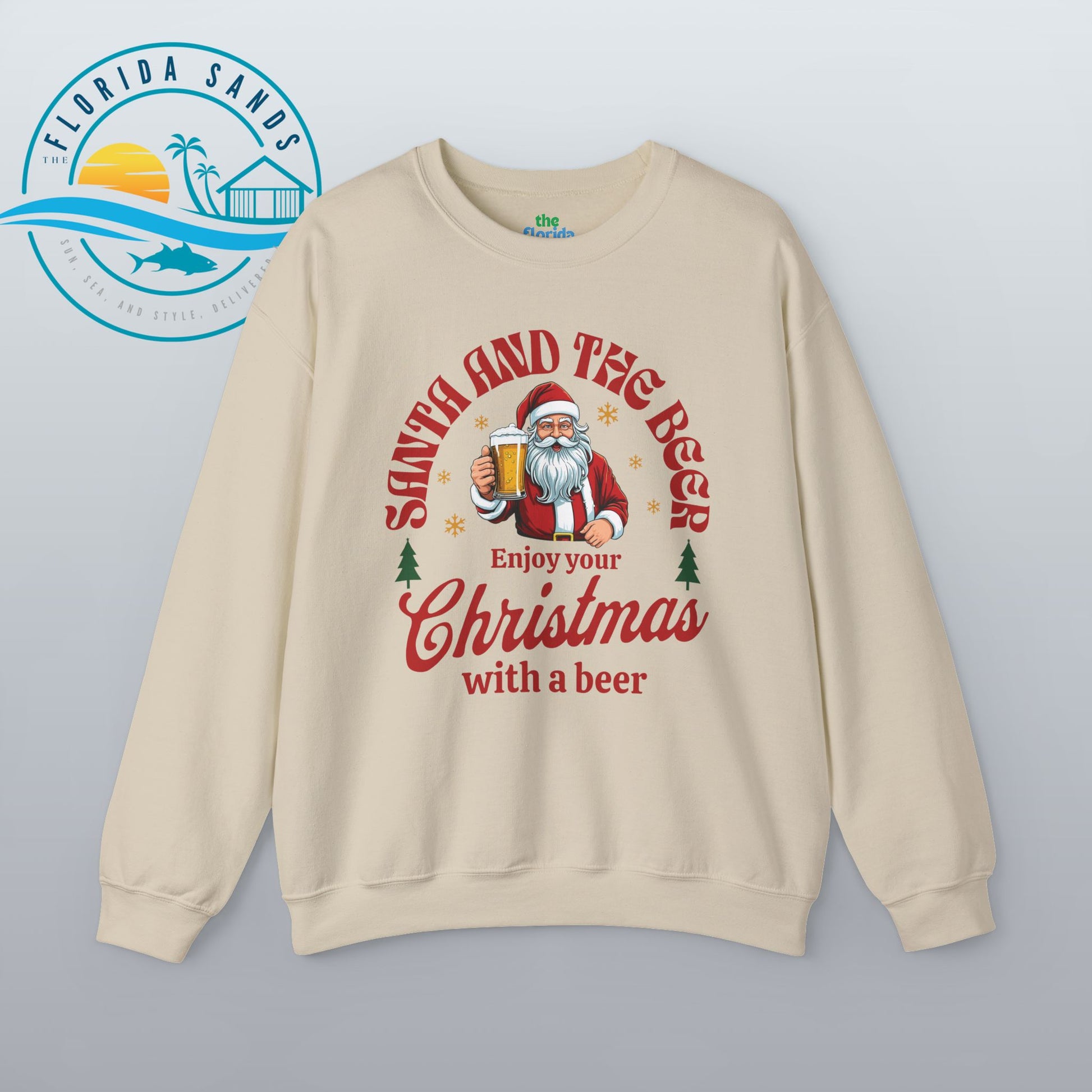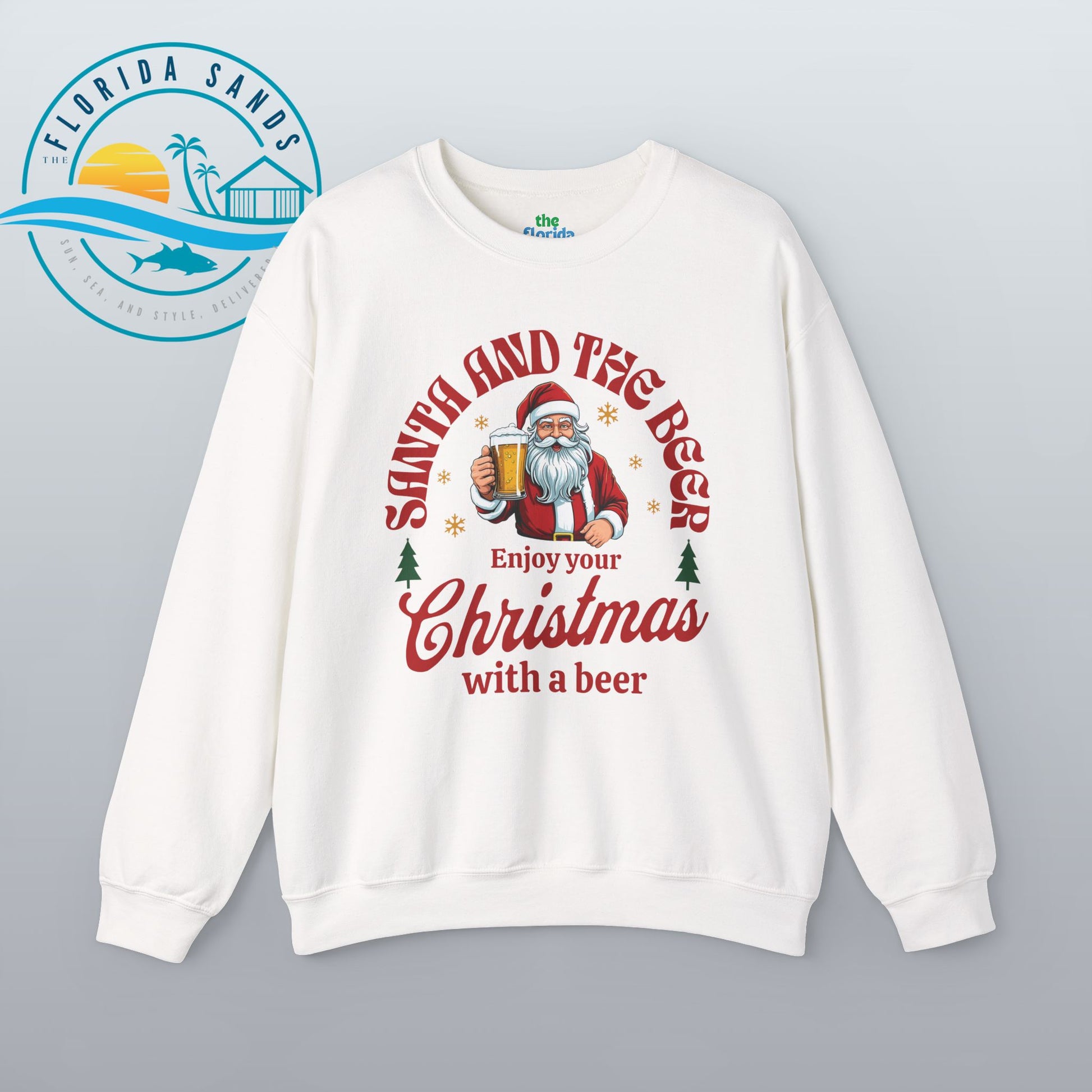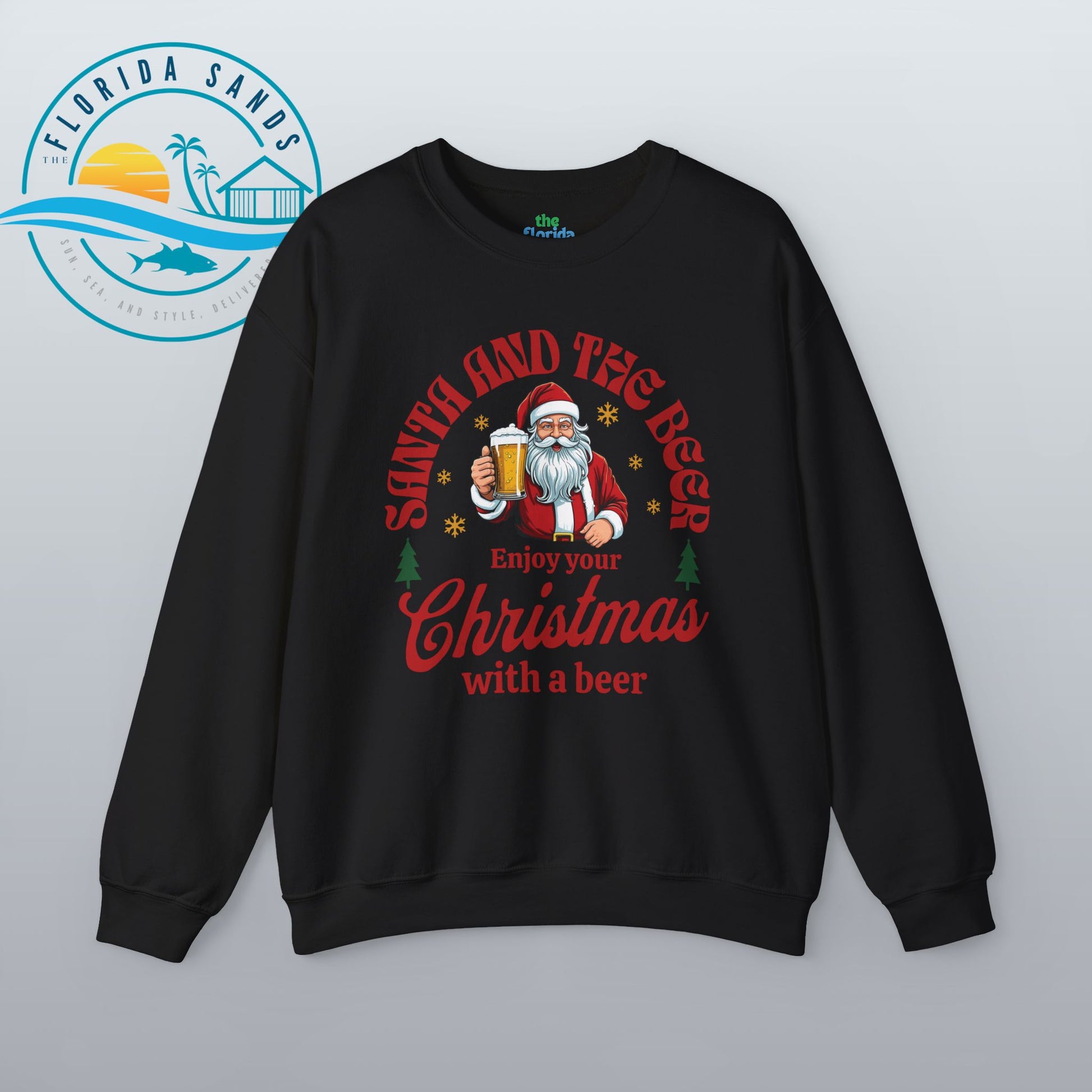 Celebrate the holidays with a frosty twist with our “Santa and the Beer” Sweatshirt — the ultimate festive sweatshirt for Florida-style Christmas fun! Featuring a playful illustration of Santa holding a cold beer and the cheeky text “Enjoy the Christmas with a Beer”, this design perfectly blends holiday cheer with relaxed, tropical vibes.
