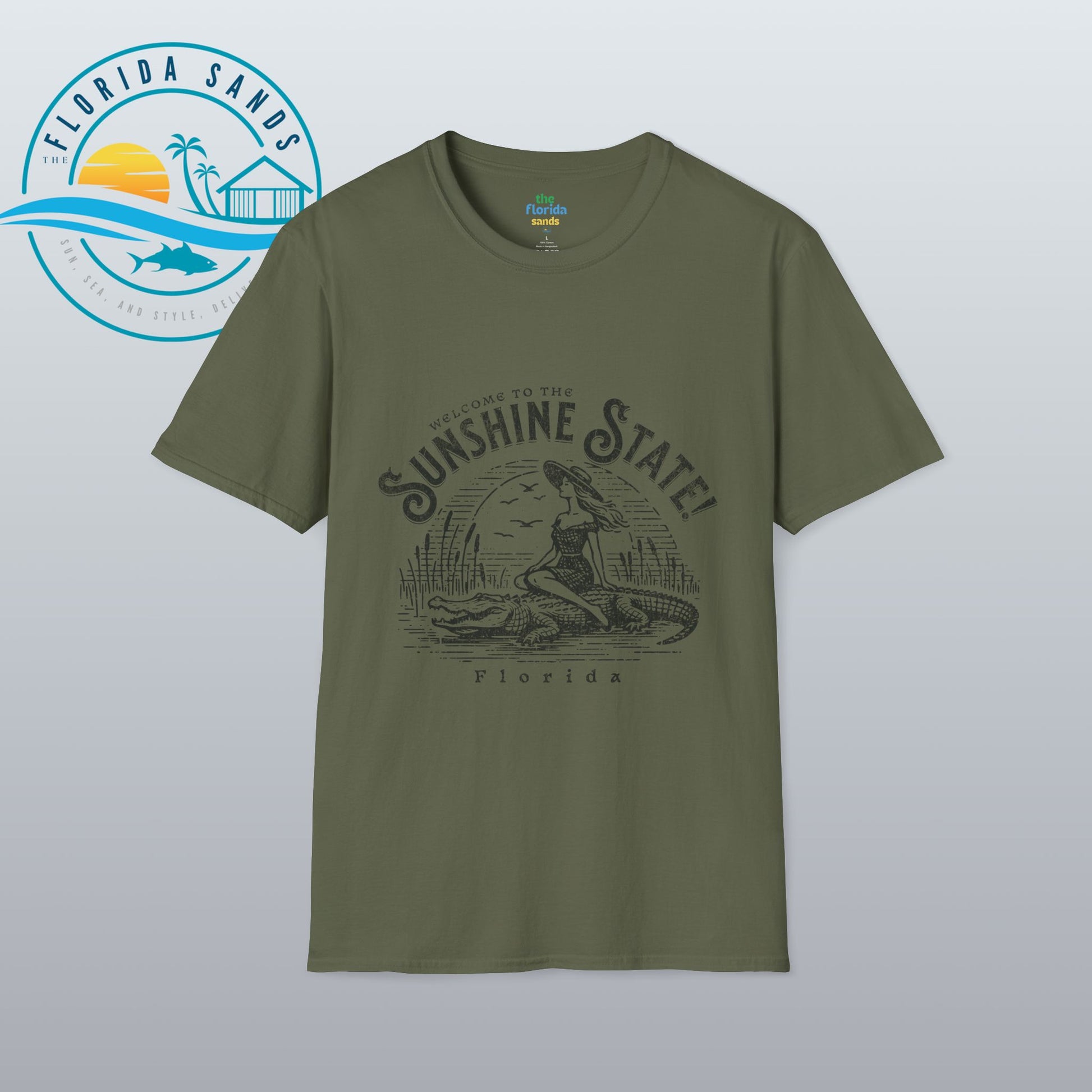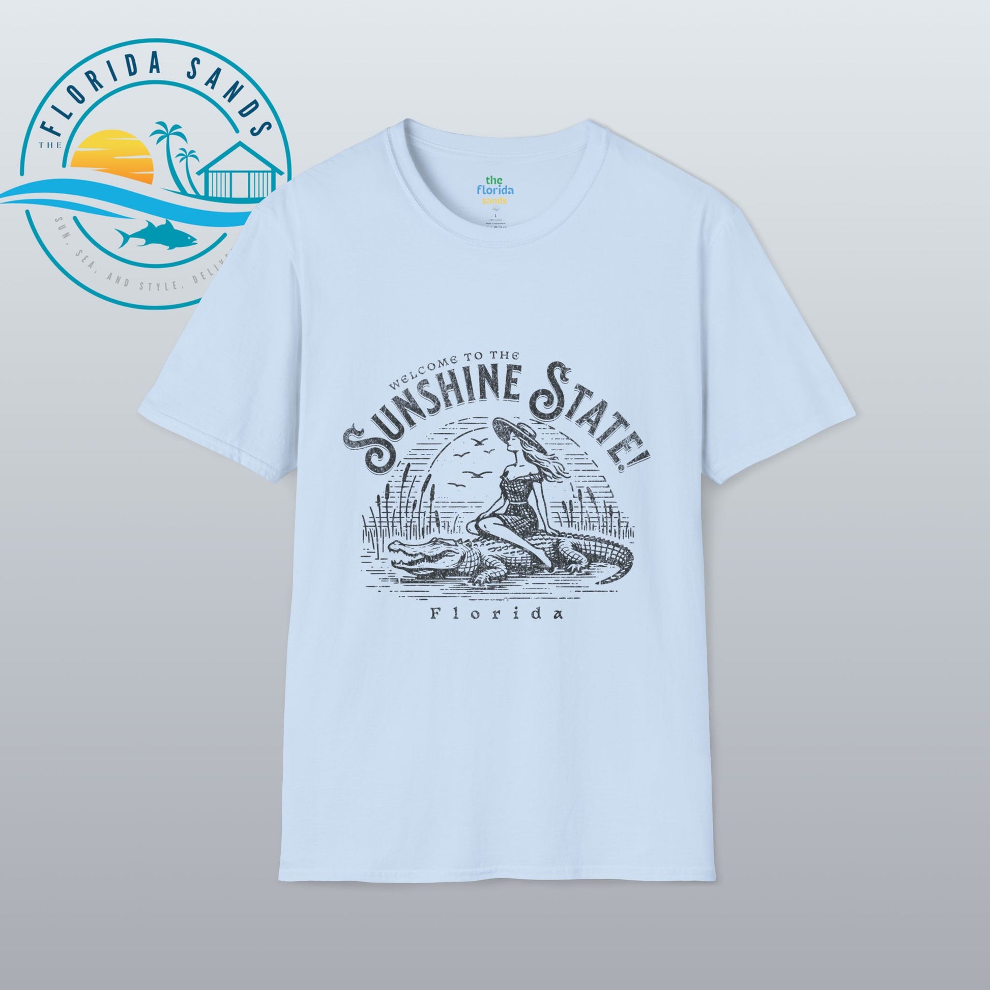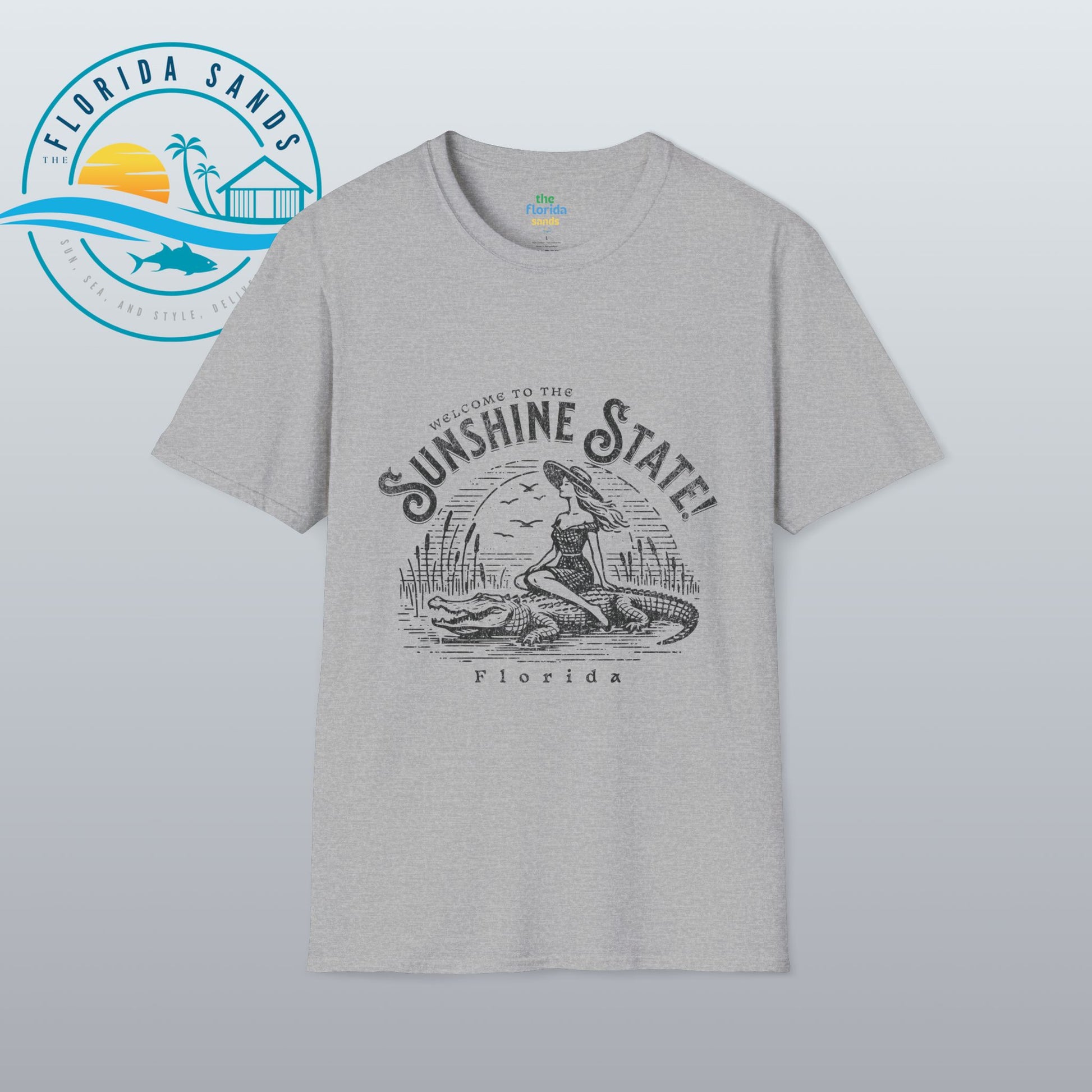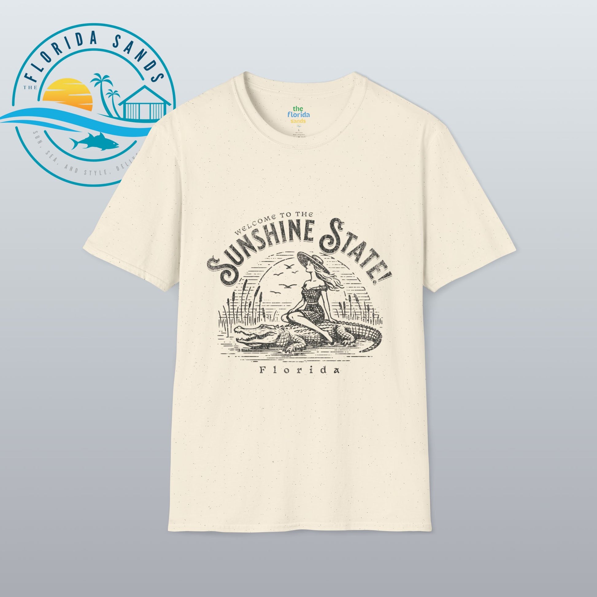 Turn up the Florida vibes with our “Sunshine State” T-shirt, featuring a daring design of a lady riding on top of an alligator. Equal parts playful and fearless, this tee captures the adventurous spirit that makes Florida unique. Made from soft, breathable cotton, it’s perfect for beach days, outdoor adventures, or just adding a bold twist to your everyday look. Comfortable, stylish, and full of personality, this unisex tee is a true tribute to life in the Sunshine State.