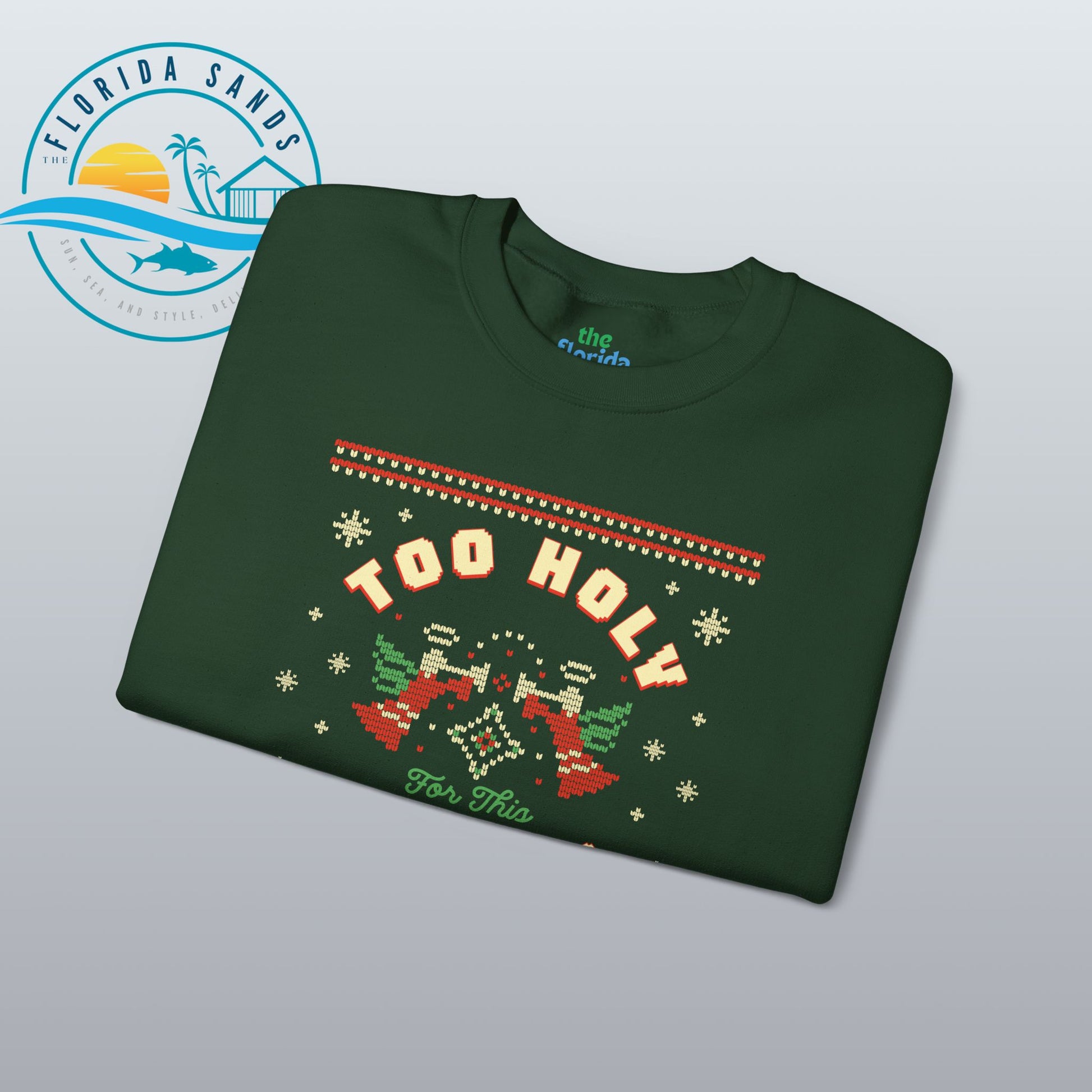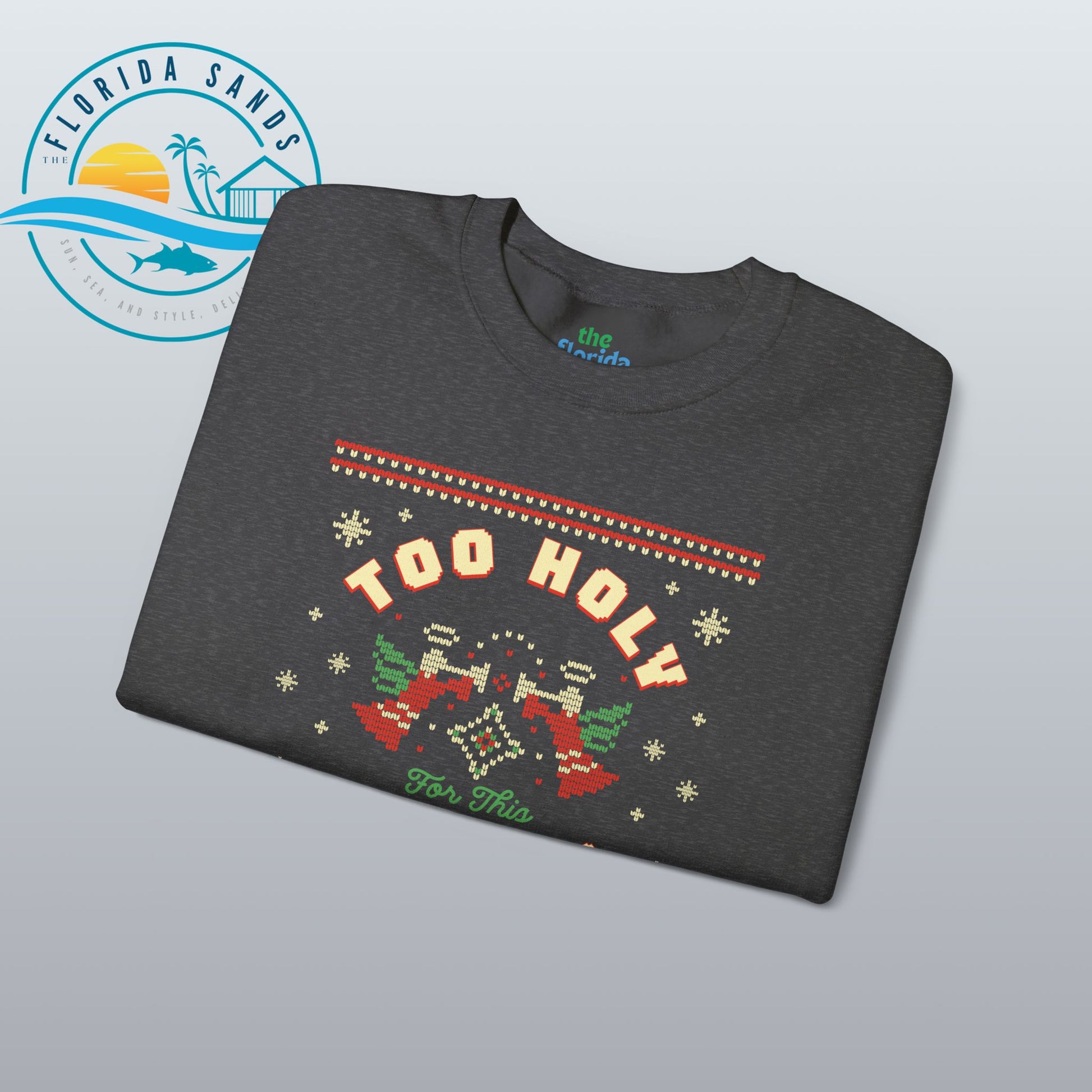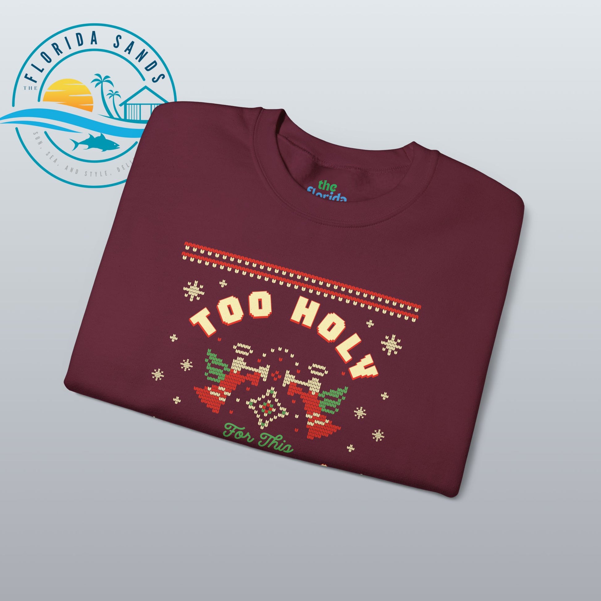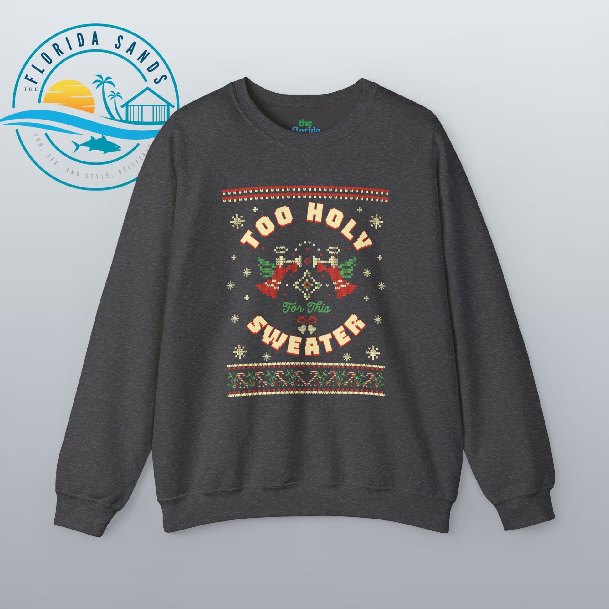 Lighten up the holiday season with a little heavenly humor! Our “Too Holy For This Sweater” Sweatshirt delivers a hilarious, festive twist with a faux knitted design featuring angel graphics, stars, and a playful statement that’s guaranteed to get laughs.