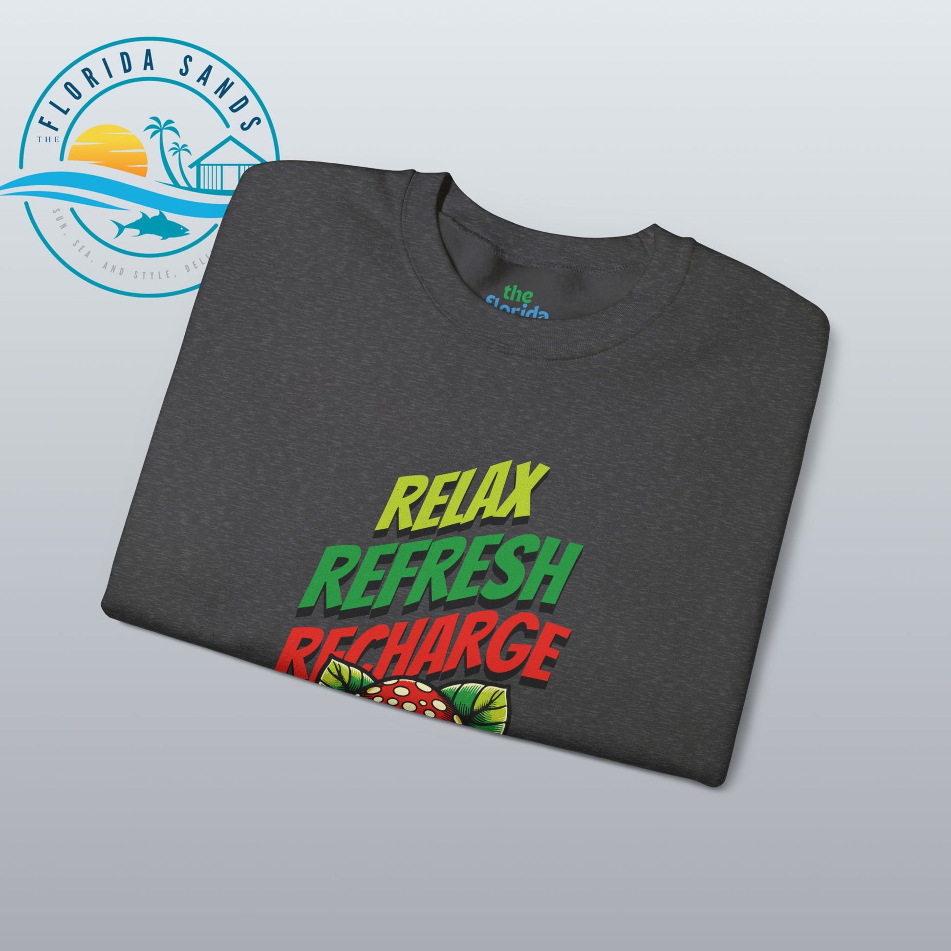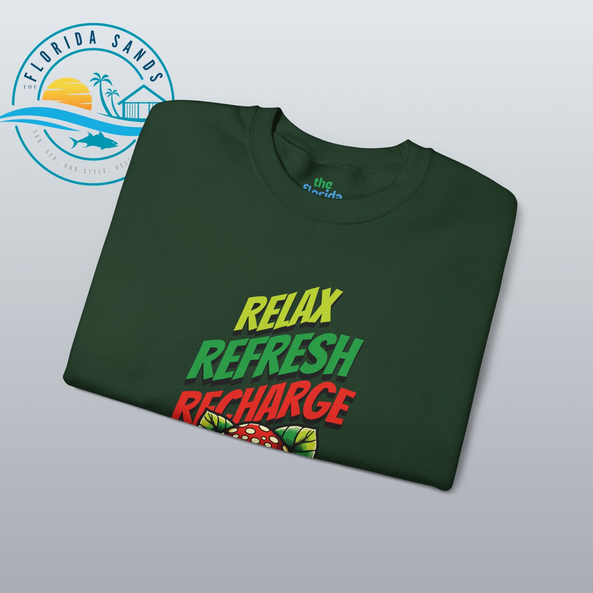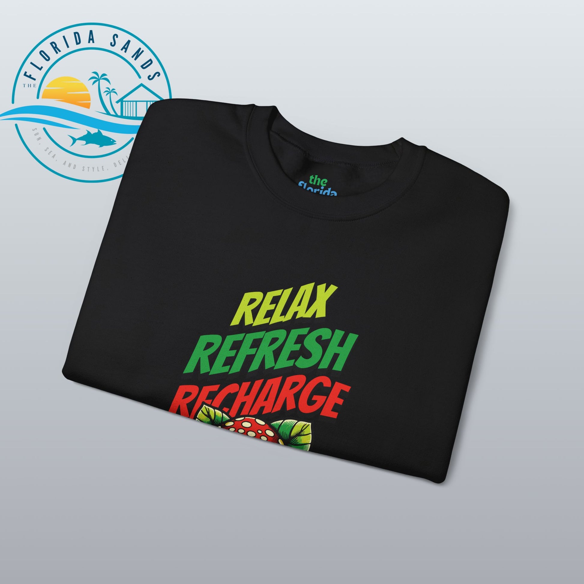 tay calm through any storm with our “Relax, Refresh, Recharge – It’s Just a Cat5 Hurricane” Sweatshirt, a witty and whimsical take on Florida’s legendary storm-season spirit. Featuring a laid-back frog chilling under a mushroom, this design perfectly captures that unique Florida attitude — relaxed, humorous, and totally unbothered, even when the winds start to howl.