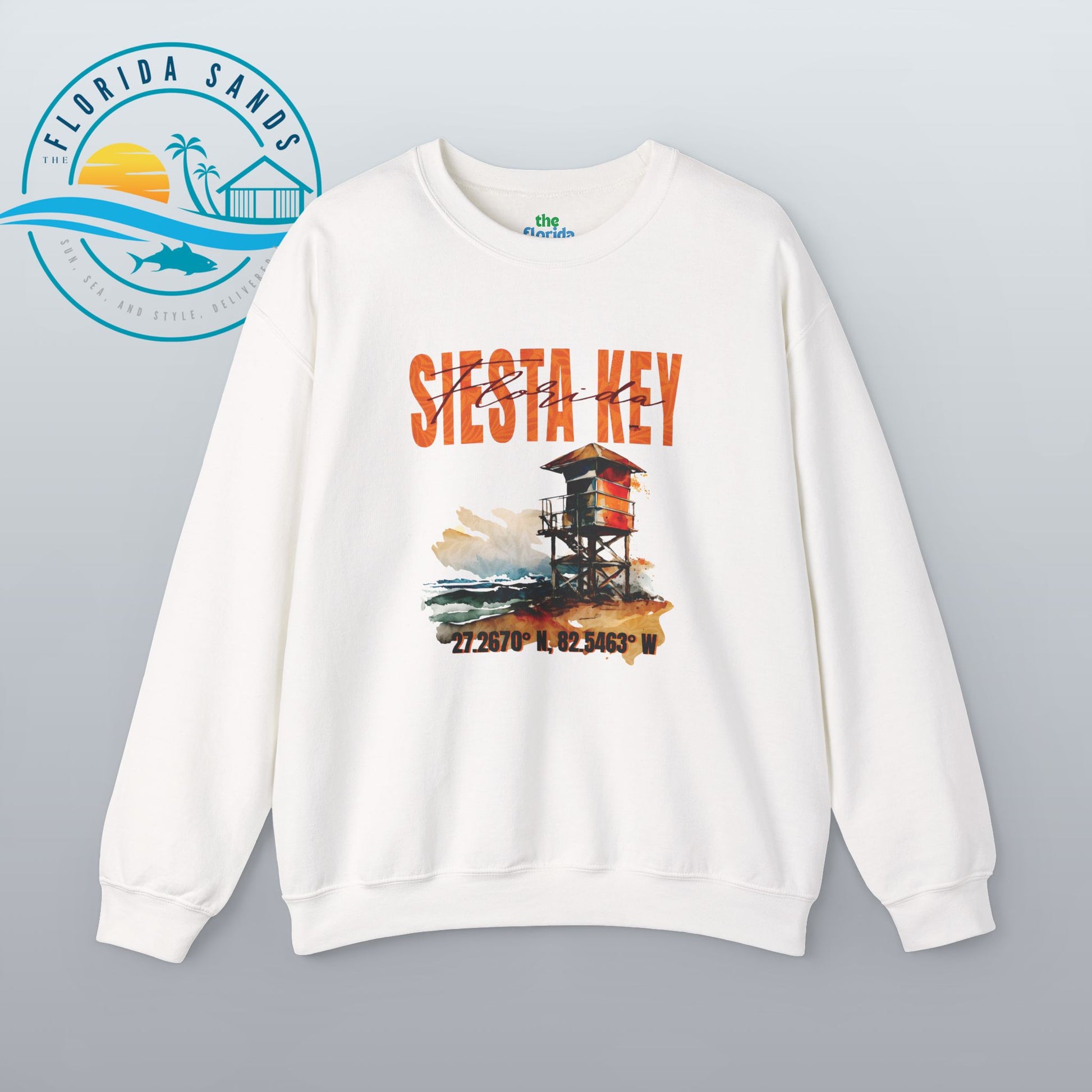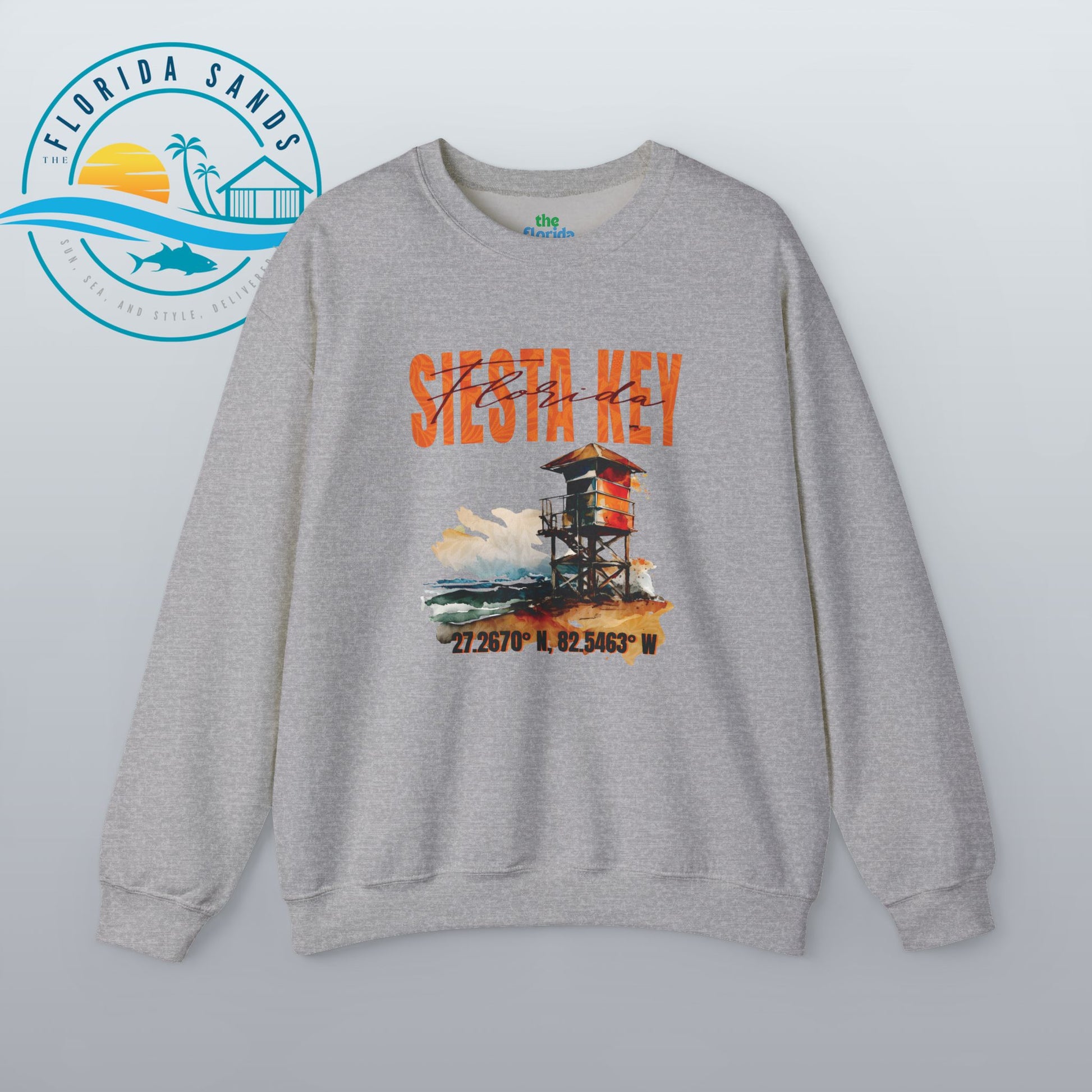Capture the relaxed, sun-soaked vibes of Florida’s iconic shores with our “SIESTA KEY” sweatshirt from The Florida Sands! Featuring a charming graphic of a beach stand at Siesta Key Beach along with its exact location coordinates, this design brings the spirit of this world-famous destination right to your wardrobe.