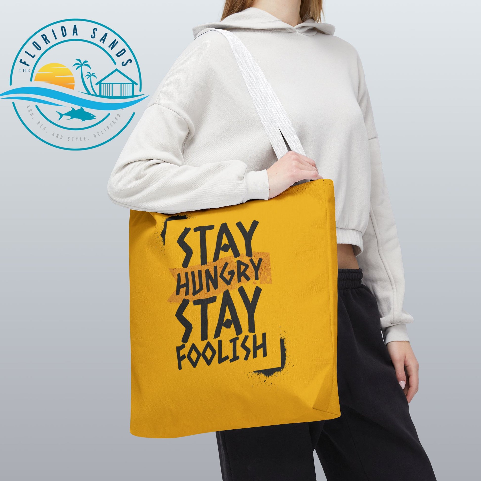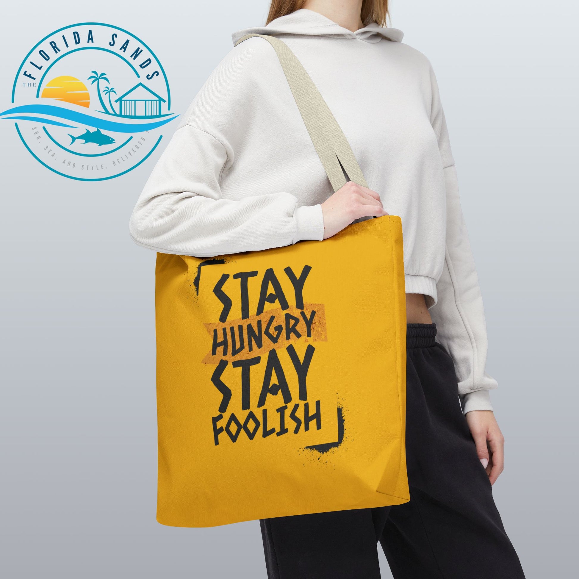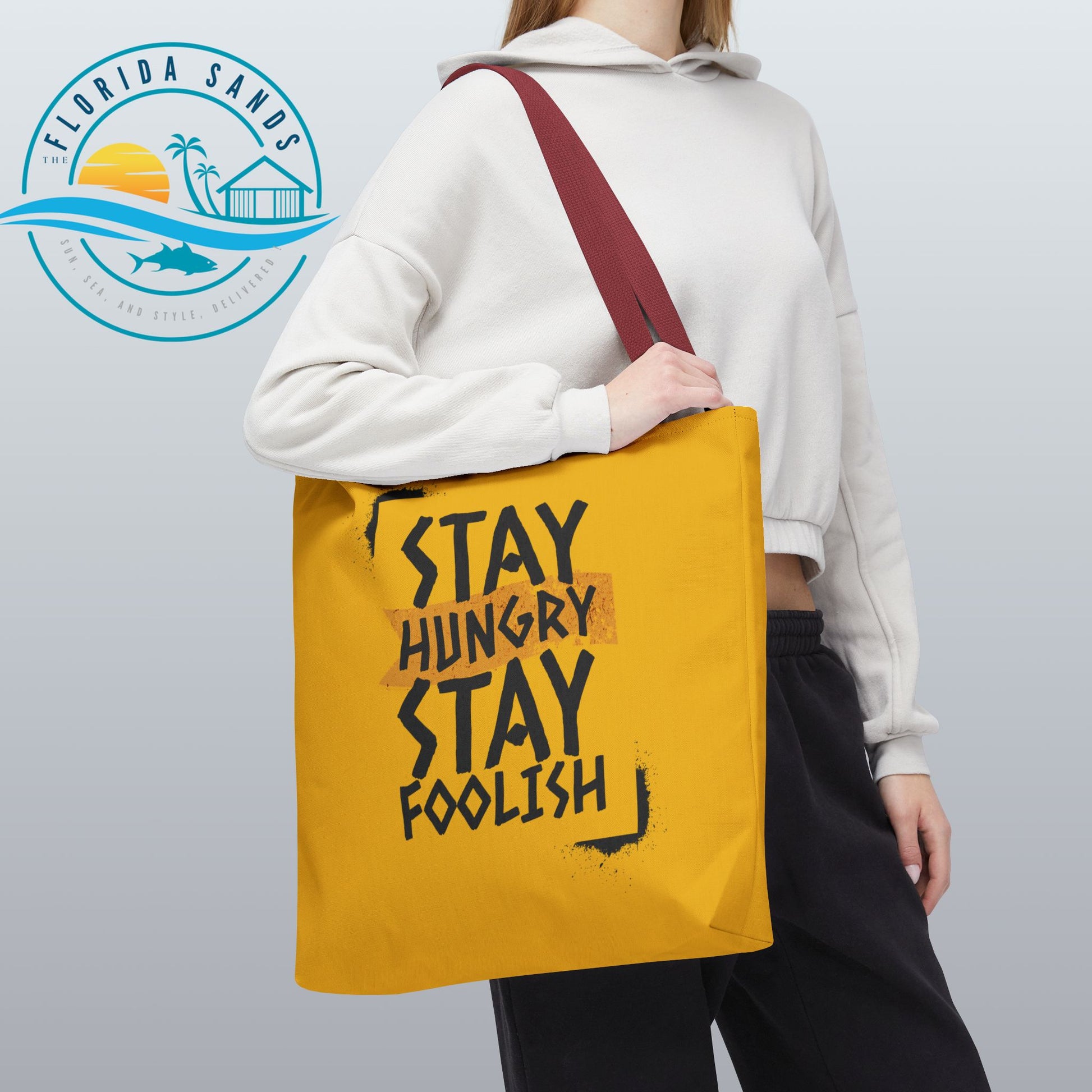 Carry your motivation everywhere with this statement-making tote featuring the iconic “Stay Hungry Stay Foolish” quote. Perfect for dreamers, doers, and go-getters, this bag is a daily reminder to chase your passions, take risks, and embrace the journey.