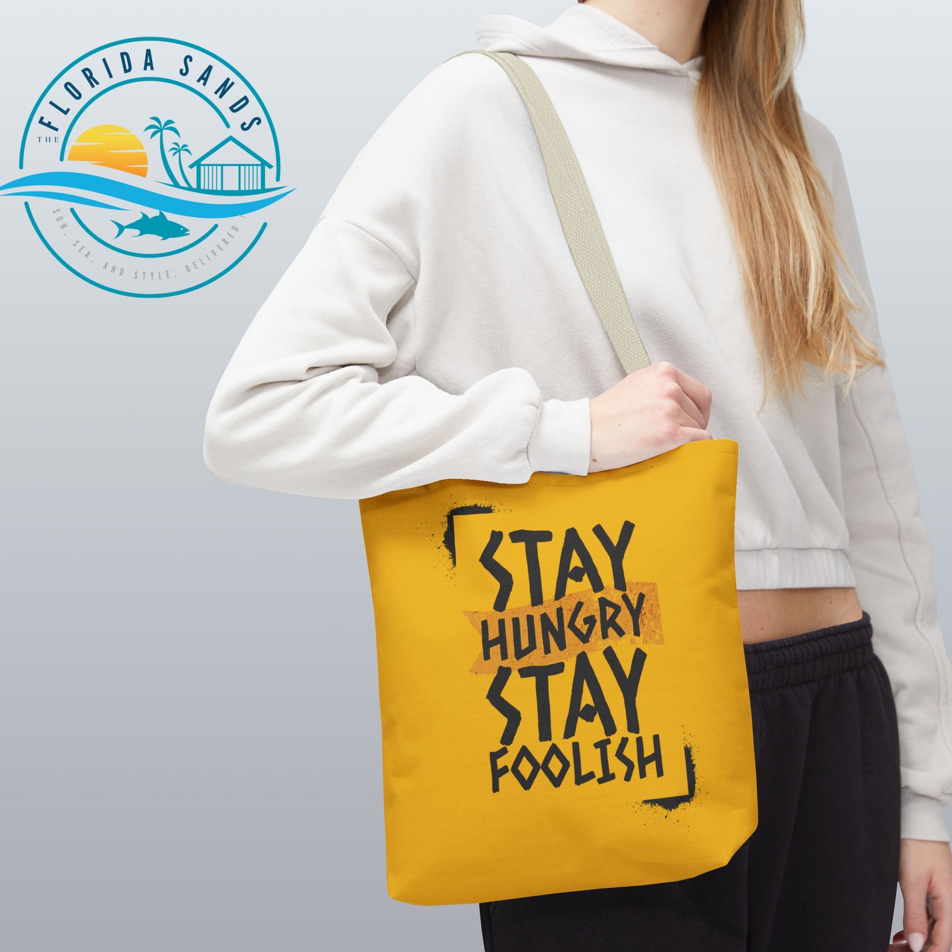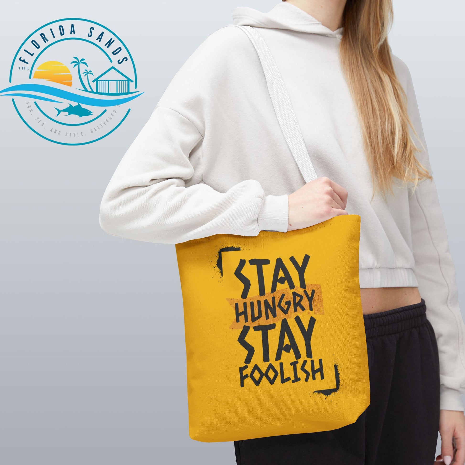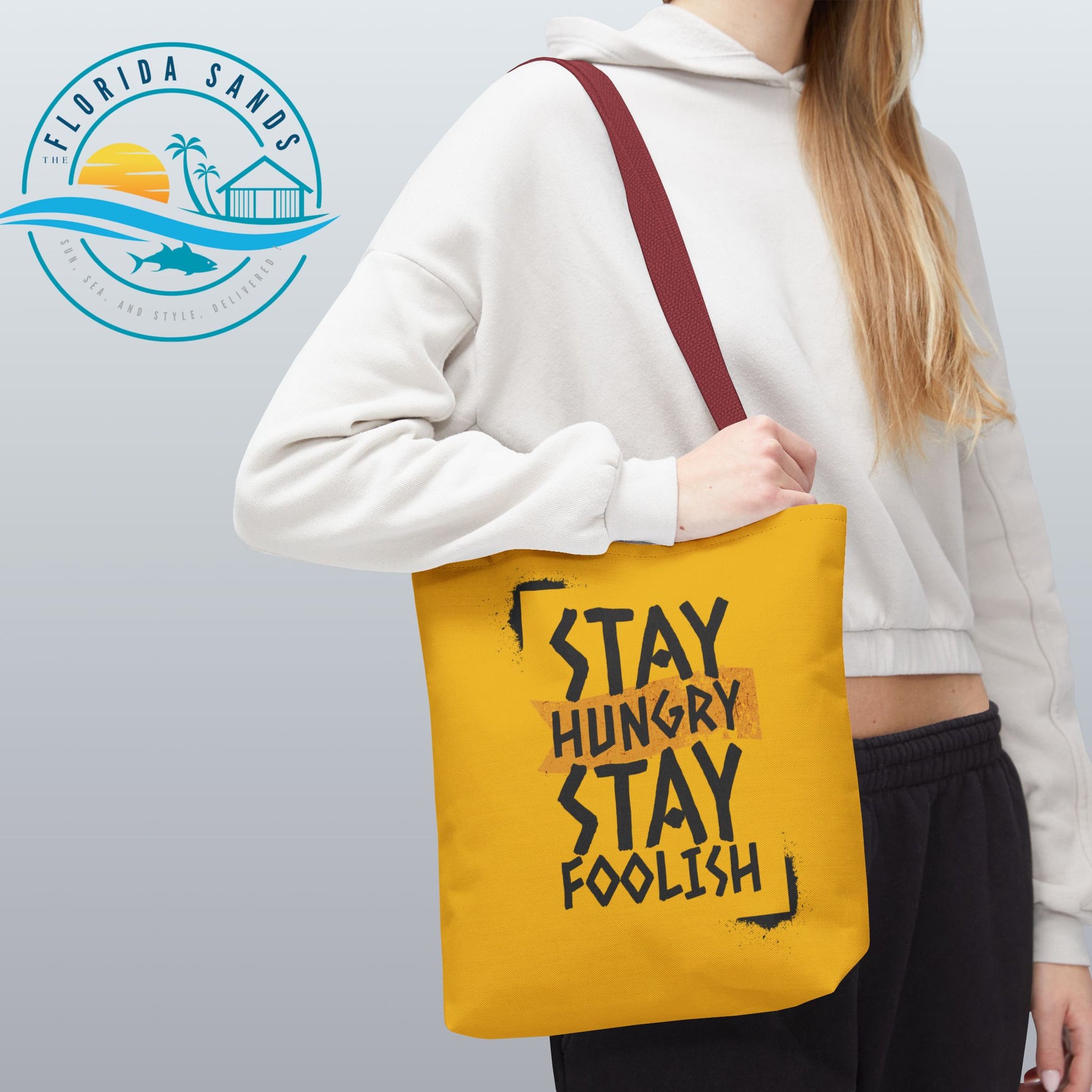 Carry your motivation everywhere with this statement-making tote featuring the iconic “Stay Hungry Stay Foolish” quote. Perfect for dreamers, doers, and go-getters, this bag is a daily reminder to chase your passions, take risks, and embrace the journey.