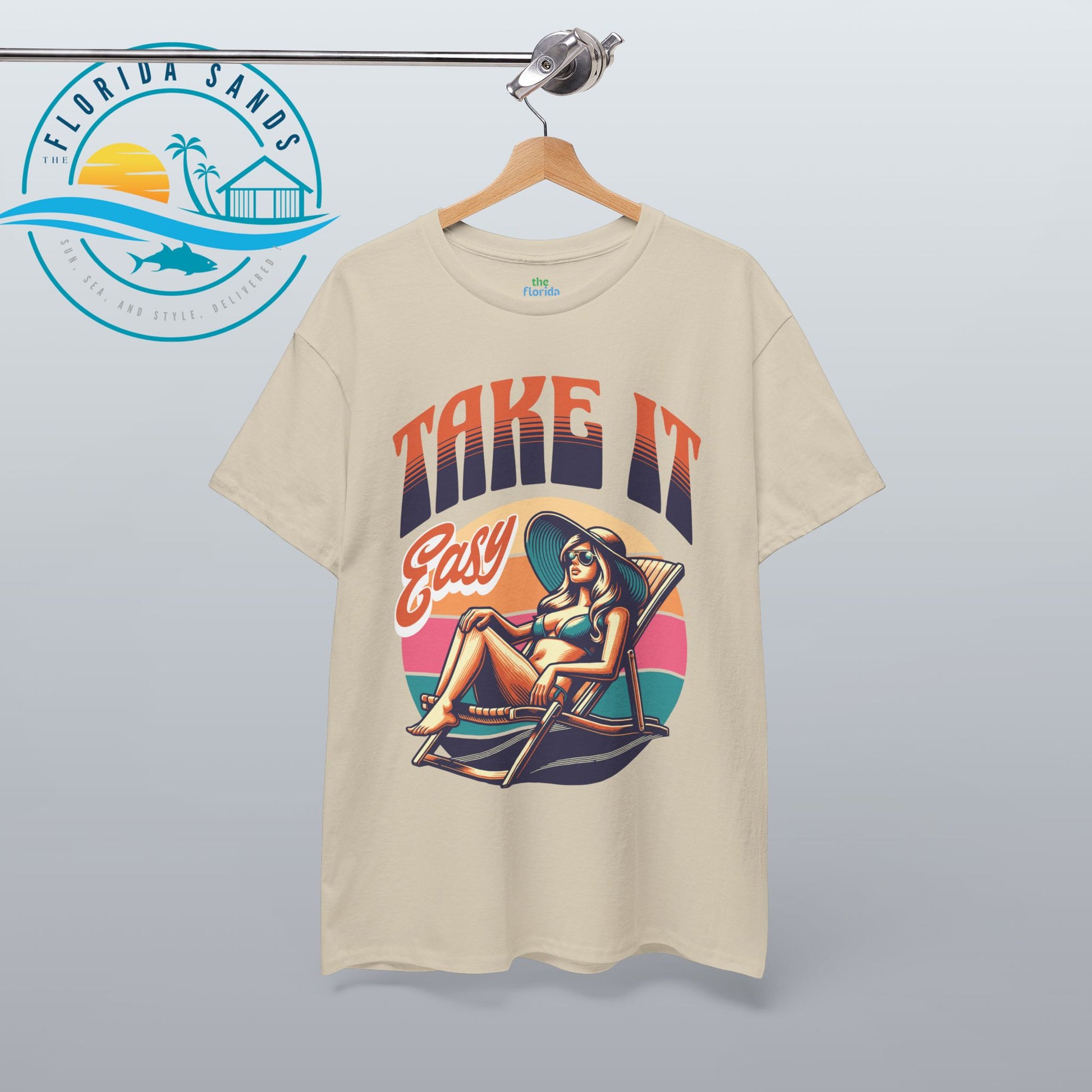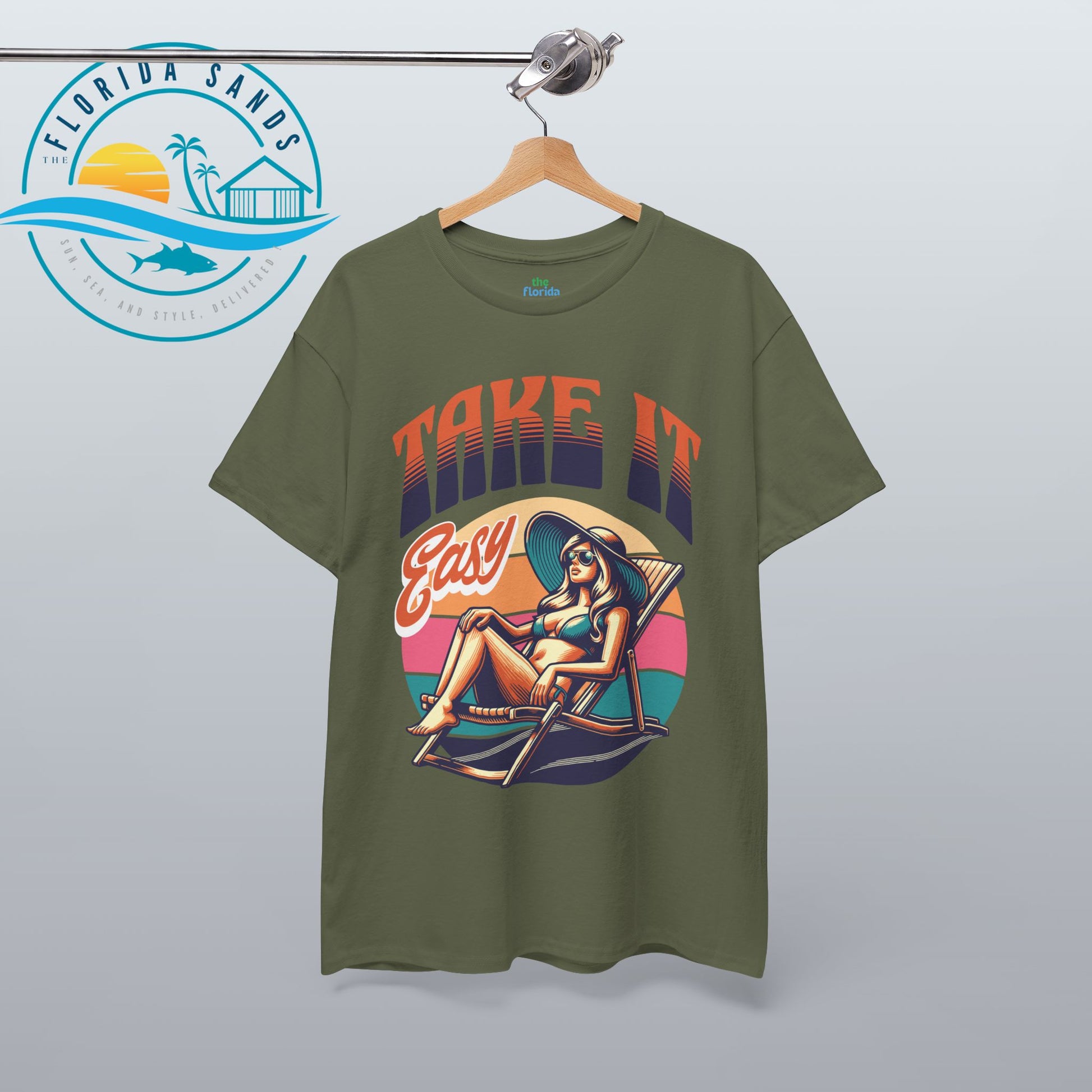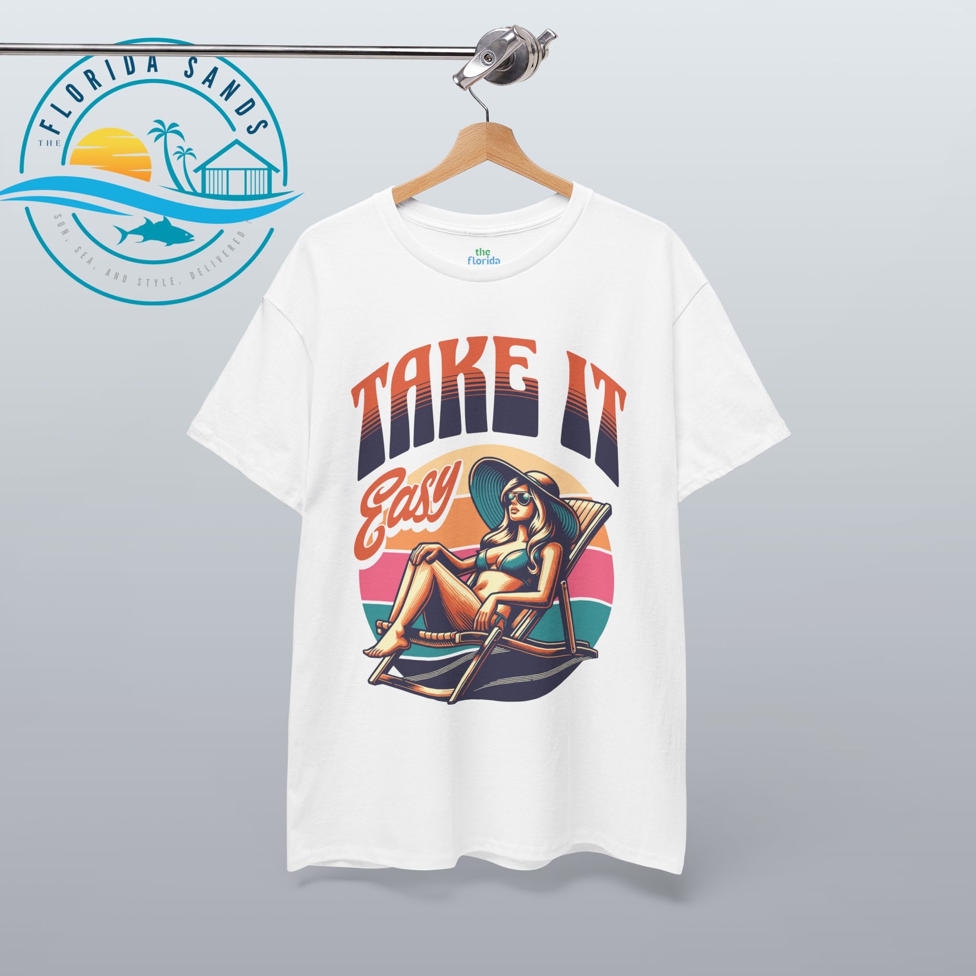Unwind in style with our “Take It Easy” T-shirt, featuring a serene design while relaxing on the beach. This tee captures the true essence of Florida living—sun, sand, and a carefree spirit. Made from soft, breathable cotton, it’s perfect for those who love to slow down and savor coastal moments. Whether you’re strolling along the shore, enjoying a beachside sunset, or simply chilling with friends, this versatile unisex tee adds a laid-back charm to your wardrobe. A must-have for anyone who believes life is better with sandy toes and ocean views.