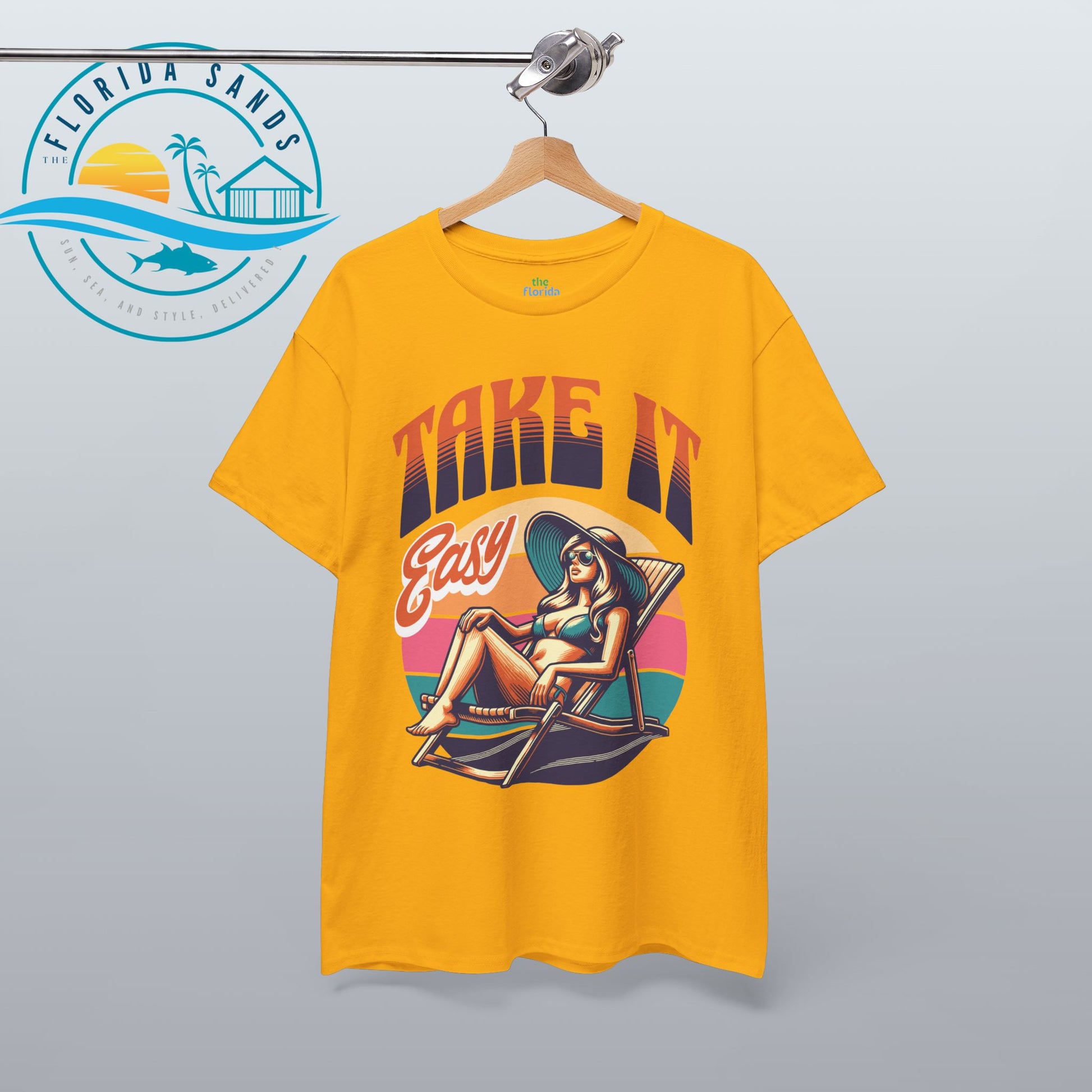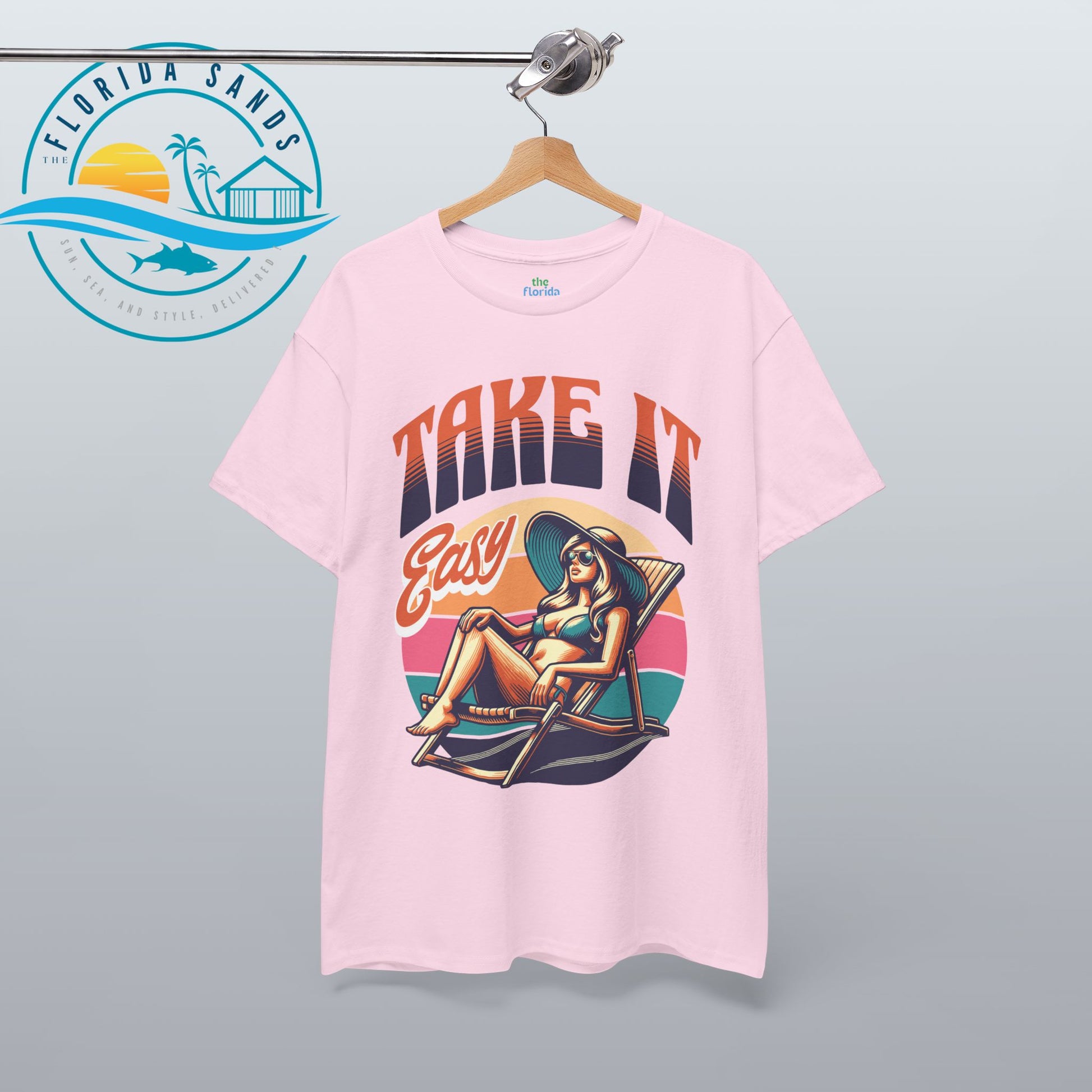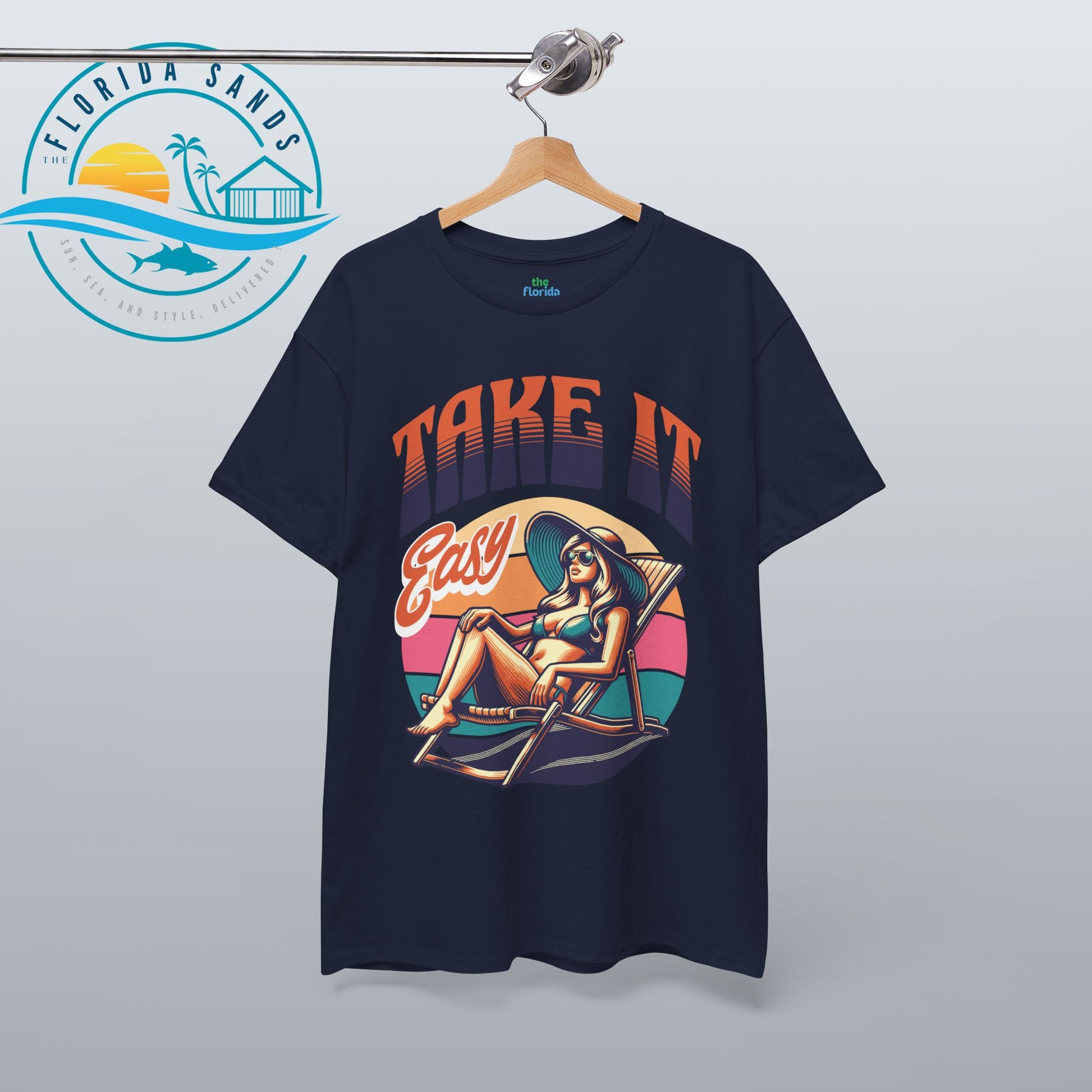Unwind in style with our “Take It Easy” T-shirt, featuring a serene design while relaxing on the beach. This tee captures the true essence of Florida living—sun, sand, and a carefree spirit. Made from soft, breathable cotton, it’s perfect for those who love to slow down and savor coastal moments. Whether you’re strolling along the shore, enjoying a beachside sunset, or simply chilling with friends, this versatile unisex tee adds a laid-back charm to your wardrobe. A must-have for anyone who believes life is better with sandy toes and ocean views.